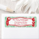 Ein individualisierbares Retro-Retro-Rücksendelabel mit roten Ornamenten rund um eine weiße Plakatwand auf grünem Hintergrund mit Schneeflocken.