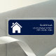 Elegante Rücksendeadressen-Aufkleber mit einem niedlichen Zuhause-Symbol vor dunkelblauem Hintergrund.
