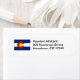 Die Adressangaben auf diesem Etikett befinden sich rechts neben der Staatsflagge von Colorado. Bearbeiten Sie den Textbereich, um vor dem Kauf Ihre eigenen Daten einzugeben. Passen Sie es an, wenn nötig, um den Text zu verschieben oder zu verkleinern.