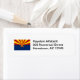 Die Adressangaben auf diesem Etikett befinden sich rechts neben der Staatsflagge von Arizona. Bearbeiten Sie den Textbereich, um vor dem Kauf Ihre eigenen Daten einzugeben. Passen Sie es an, wenn nötig, um den Text zu verschieben oder zu verkleinern.