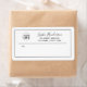 Dieses Adressetikett hat einen weißen Hintergrund und einen schwarzen Rechteck. Fügen Sie Ihr Logo, Ihren Namen in Kalligrafie Skript und Ihre Rücksendeadresse.