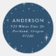Moderne Rücksendeadressen-Aufkleber mit Ihrem Namen und Ihrer Adresse umgeben von einem Rand von weißen Sternen vor einem marinen Hintergrund. Die Weihnachtsbauten sind ideal, um Ihre Urlaubskorrekturen zu verschließen. Das Design koordiniert mit unserer Merry and Bright Modern Script Urlaubssammlung.