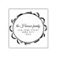 Benutzerdefinierte elegante Frame Script Familienname Rücksendeadresse Gummi Briefmarke. Erstellen Sie Ihre eigene moderne Rücksendeadresse Briefmarke für Ihre Familie. Das Design hat einen Familiennamen, eine Adresse und einen runden Rahmen. Personalisieren Sie Ihre Daten.