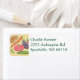 Veggies Collage - Kartoffel, Tomate, Auberginen, Erbsen, Karotten, Rind, Gurken - auf einem Rücksendeetikett.