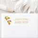 Hochzeitsrückadressen-Etikett mit goldenem Eukalyptus-Zweig-Design.