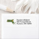 Die Adressangaben auf diesem Etikett befinden sich rechts neben einer attraktiven Karte von Massachusetts. Bearbeiten Sie den Textbereich, um vor dem Kauf Ihre eigenen Daten einzugeben. Passen Sie es an, wenn nötig, um den Text zu verschieben oder zu verkleinern.