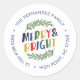 Dieser niedliche, moderne Weihnachtsaufkleber zeichnet sich durch eine skurrile Typografie aus, die Merry and Bright mit einem Zweigfalzrahmen in traditionellen Farben ausliest. Personalisieren Sie es mit Ihrem Familiennamen, Ihrer Rücksendeadresse oder einem anderen benutzerdefinierten Text. Verwenden Sie die Designtools, um die Schriftart und Farben anzupassen oder laden Sie Ihre eigenen Fotos.