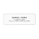 Moderne Rücksendeadressen-Aufkleber mit einem einfachen Design mit Ihrem Firmennamen in einem klassischen schwarzen fetten Sans seif Schriftart und zwei Textzeilen für Ihre Rücksendeadresse in einem normalen serifenlosen Schriftart, auf weißem Hintergrund. Diese minimalistischen Rücksendeadressen-Aufkleber haben ein schlichtes und einfaches Layout und fügen trotzdem eine berufliche Touch zu Ihren Umschlägen hinzu.
