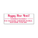 Frohes Silvester Gummi Briefmarke. Senden Sie die Nachricht Happy New Year von Ihnen oder Ihrer Familie mit dieser Rücksendeadresse Briefmarke. Vermitteln Sie Ihre guten Neujahrsgrüße als selbstgefällige Briefmarke aus Gummi. Immer wieder verwenden.