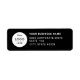 Kundenspezifische Rücksendeadresse-Label mit Firmenlogo in Schwarz, kundenspezifisch bedruckten Firmenadressen-Etiketten mit Ihrem beruflichen Firmenlogo. Fügen Sie einfach Ihr Firmenlogo zum weiße Kreis-Objekt-Bild hinzu und passen Sie Ihren Firmennamen und Ihre Firmenadresse an. Schwarz-Weiß-Farben und Text können geändert werden.