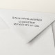 Moderne und elegante Cursive Script Typografie Einladung Rücksendeadresse selbst-Tinte Briefmarke, die ideal für eine Save the Date, UAWG, Brautparty, Baby Duwer, Geburtstagsparty, Weihnachts-Weihnachtskarte oder Einladung ist. Der Text dieses handgeschriebenen modernen Schriftzeichen kann mit Ihrem Namen und Ihrer Adresse aktualisiert und angepasst werden. Diese Babydusche, Brautparty, Junggeselinnen-Abschied per Post, Hochzeit oder Verspätung der Date Rücksendeadresse Lables sind perfekt für die Veranstaltung oder das Party, das auf ein neues Datum umgezogen werden muss.