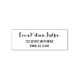 Elegante, schicke Rückadressen-Briefmarke aus Gummi, die sich selbst färbt, mit einem modernen, kursiven Handschrift-Script mit klaren Schnörkeln für den personalisierten Namen und einem einfachen, minimalistischen All-Caps-Schriftart für die Adresse.