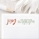 Ein handgeschriebener "JOY" in festlichem Rot und Grün auf Weiß schmückt dieses festliche Rücksendelabel.