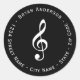 Dieses kreisförmige Adressetikett ist mit einem weißen Notenbild dekoriert.