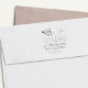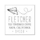 Mit unserer Briefmarke zur Rücksendeadresse von weißem Flugzeug mit handgestempeltem Charme, mit Namen und Rücksendeadresse, in einem modernen Mix aus handgeschriebenem Stil und Blockschrift.