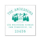 Erstellen Sie Ihre eigenen handgezeichneten Rücksendeadresse-Gummi-Briefmarke mit diesen Vorlagen durch Einbinden. Dieses rustikale Design besticht durch eine handgezeichnete Bergkette und einen Kiefernwald mit individuelle Name und Rücksendeadresse in einer niedlichen Typografie.