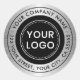 Firmenadressen-Etikett mit eigenem Logo, Bild oder Foto in einem schwarzen Kreis in der Mitte und Firmenname und Rücksendeadresse in einem modernen serifenlosen Schriftart auf einem silbergrauen Farbverlauf (Farbverlauf, nicht echte Folie).