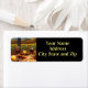 So Hübsch! Wein auf einem rustikalen Tisch mit Sonnenblumenfeld und Kerzen. Ein warmes Gefühl zu diesem Wein Thema Rückkehr Adresse Etikett. Fügen Sie Ihre Informationen hinzu, ändern Sie den Schriftart, wenn Sie möchten!