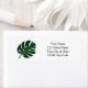 Grünes Monstera Deliciosa Palmenblatt mit Löchern Rücksendeadressen-Aufkleber. Rücksendeadressen-Aufkleber mit personalisiertem Namen. Niedliche Aufkleber für Post und Gastgeschenke. Elegante Typografie-Vorlage mit exotischem Blumendruck inspiriert von der Natur. Anpassbare Text- und Hintergrundfarbe. Klassisches Design für tropische Hochzeit in Urlaubsort, Brautparty, Verlobung, Jubiläum, Geburtstag etc. Erstellen Sie Ihre eigene mit Familiennamen / Nachnamen.