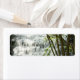 Wasserfall-Rücksendeadressen-Aufkleber. Dieses Set von Etiketten mit schönen Kaskaden hat Bäume im Vordergrund mit Sonnenlicht auf ihren Blätter.