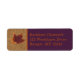 Diese rustikale Herbstprägung Avery-Rücksendeadressen-Aufkleber in Herbstfarben gebrannter Orange, Rost, Gold und Braun zeigt zwei Blätter getrockneter Ahorn auf einem IMITAT Bräpensack und lila Hintergrund, der der unten abgebildeten Hochzeitseinladung entspricht. Der verbrannte orangefarbene Text ist anpassbar. ****BITTE BEACHTEN SIE, dass alles drucken wird, wie es auf Ihrem Monitor angezeigt wird. Wenn Sie Tippfehler, Alignment oder Größenprobleme haben, wenden Sie sich bitte an mich, um Hilfe zu erhalten, bevor Sie bestellen. Führen Sie den Text NICHT bis zu einem Rand aus, oder er wird abgeschnitten, wenn Sie das Etikett aus dem Blatt entfernen. Ich kann mit nichts umgehen, wenn die Bestellung bei Zazzle aufgegeben wurde. Wenn Sie weitere passende Artikel benötigen, schicken Sie bitte eine E-Mail an niteowlstudio@gmail.com.