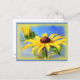 Helle Fröhlichkeit Rudbeckia, Schwarz-mit Augen Susan, dunkle Blume und Knospen, auf blauem Hintergrund mit passender Vignette. Blumenbild in MTBobbins Taglilien in New Hampshire aufgenommen und erstellt.