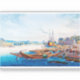 Digital restauriert und erweitert: Rüdesheim aus dem Südwesten, wie aus dem Rheinhafen in Bingen zu sehen - ein Aquatinta von Johann Ludwig Bleuler (erschaffen vor 1840).
