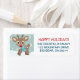 Niedliche Arktis-Thema Weihnachten Rücksendeadressen-Aufkleber Rudolph der Rot-Nose Rentier stehend im Winterschnee mit einem Hintergrund von Schneeflocken und ein Happy Holidays Gruß. Original-Kunstwerk KL Stock