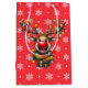 Rudolph the Red Nosed Rentier with White Snowfloakes on Red Medium Gift Bag
