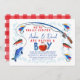 Reel spannende Fishing Themed Baby Dusche Einladung Dieses Junge's Thema Baby Dusche Einladung zum Angeln bietet eine Angelrute, blauen Fisch, einige Keule und Blasen sowie ein Angelbob, dass Zauber aus Junge.