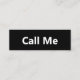 Front: Diese schwarze Visitenkarte enthält Text, den Sie bearbeiten können, um Ihren Namen, Ihre Telefonnummer und eine benutzerdefinierte Nachricht anzuzeigen. Dein Name wird fett geschrieben sein. Zurück: Call Me ist in weißem Text.