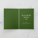 Vielen Dank für die Karte für den Ring Träger in einer Hochzeit. Fügen Sie ein Foto des kleinen Typ an der Vorderseite dieser vertikalen, gefalteten Notenkarte hinzu. Ganz unten, "Danke, [Name]" und innen weiter zu der Nachricht, die ihm sagt, wie großartig er war. Fügen Sie auch eine gedruckte Signatur hinzu. Dunkelwald grüne Farbe innen mit weißem Text.