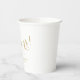 Elegante schicke Gold und weiße, benutzerdefinierte Skriptkalligrafie Text Wedding Paper Cups. Prost. Vollständig anpassbarer, klassischer, eleganter Text.