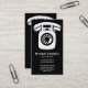 Eine klare, stilvolle und attraktive Visitenkartenvorlage mit einem fett 3D-Effekt-Retro-Handy-Motiv in Weiß. Hauptfirmendetails auf der Vorderseite, mit Namen und persönlichem Kontakt auf der Rückseite.