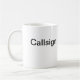 Wörter, "SCHINKEN-MANN" schmücken diese Kaffee-Tasse mit dem Bild eines Antennenmasts (auf einer Seite). Auf der anderen Seite ist ein Platz für ein Rufzeichen. Wie üblich ist Schriftart, Buchstabegröße und Farbe optional/veränderbar.