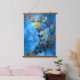 Viele farbenfrohe Schmetterlinge fliegen zusammen über einen weichen blauen Hintergrund von Wolken in einer Kurve.