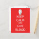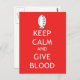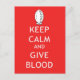 Im Stil der klassischen britischen WW2, die Calm Propagandaposter Behalte, erklärt sie "Behalt Calm and Give Blood" mit einem Bild eines Rugby-Balls, in dem die Krone normalerweise geht.