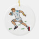 Rugby player in full flight carrying the ball. Ready to hand off any tackler - this ball is going all the way to the try line.