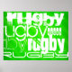 Cooler, weißer Rugby-Fußball, Wolkenwolke-Muster, heller Neonkalk, grüner Stripestemplate im Hintergrund! Großartiges Geschenk für Kinder, Teenager, Teenager oder Erwachsene; Junge! Trendy, niedliches Design mit verschiedenen lustigen grunge weißen Schriftart!