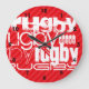 Rugby; Scarlet Red Stripes Große Wanduhr