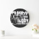 Rugby; Schwarz & Dunkelgrau Streifen Große Wanduhr