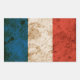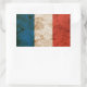Die Flagge Frankreichs ist so gestaltet, dass sie alt und robust aussieht. Rasse Texturen bedecken die Fahne und geben diesem Aufkleber ein grunges Gefühl. Diese zerrissene französische Flagge ist eine lustige und stilvolle Art, Ihren Patriotismus zu zeigen.