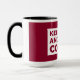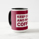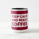Eine Kaffeemaschine mit einem Design, das lautet: "Behalt Ruhe und Kaffee machen". Dieses Design wurde von Debbie Quick aus Debs Creative Designs erstellt. www.debscreativedesigns.com
