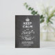 Behalt Ruhe und Save the Date Chalkboard Curly Script Funny Save the Date Postcard. Mit Fett*fa*tin entworfen. Einfach mit eigenen Texten, Fotos oder Bildern anpassen. Für individuelle Anfragen wenden Sie sich bitte direkt an fat*fa*tin. Es gelten benutzerdefinierte Gebühren. www.zazzle.com/fat_fa_tin www.zazzle.com/color_therapy www.zazzle.com/fatfatin_blue_knot www.zazzle.com/fatfatin_red_knot www.zazzle.com/fatfatin_mini_me www.zazzle.com/fatfatin_box www.zazzle.com/fatfatin_design www.zazzle.com/fatfatin_ink