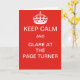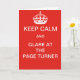 "Behalt ruhig und schaue an der Seitenumdrehung" - das ist klassisches Manöver eines Solo-Interpreten - geht während eines Auftritts etwas schief, also ist es das Beste, den offensichtlichsten Täter anzuschauen! Das Design hat einen roten Hintergrund und die berühmte Krone mit den Worten, wie in dem Poster des Zweiten Weltkriegs der Serie "Behalt Calm and Carry on"... Ein lustiges Design, das jedem Musiker gefallen würde - vor allem jemand, der mit einem schlechten Seitenumdreher arbeiten muss. Die Innenseite der Karte ist leer für Ihre eigene Nachricht.