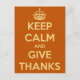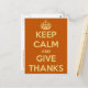 Ruhe behalten und danke Orange Postcard geben Postkarte