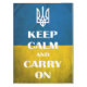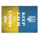 Ruhe behalten und das ukrainische Emblem-Trident w Tischdecke