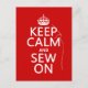 Dieser liest sich Behalten Calm und Sew On, im Stil des klassischen behalten ruhigen Poster. Es gibt eine Nadel, die durch die Buchstaben "durchbohrt" wird, und ein Faden, der daraus herrührt. Es ist eine schöne Touch in einem einfachen und klassischen Design, das für alle, die Lieben zu nähen, ob beruflich oder Amateur ansprechend. Ideal zum Nähen von Kreisen und zum Nähen.