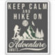 Dieser Aufkleber ist ideal für Wanderfreunde. Mit diesem lustigen Aufkleber zeigen Sie, wie viel Sie mit Liebe wandern, indem Sie Ihr Auto, Ihren Computer, Ihre Wasserflasche usw. dekorieren. Das Design beinhaltet die Wörter "Behalt Ruhe und Wandern auf" und "Adventure Awaits" mit einer Silhouette von Wanderern, Bergen, Bäumen, Sonne, Vogel und Gras zwischen den Wörtern. Das wird ein großartiges Geschenk für einen Wanderer. Design in Kittl gemacht.