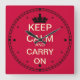 Unsere Mod inspiriert "Ruhe bewahren und auf der quadratischen Wall Clock tragen" ist eine coole Geschenkidee für jeden Anlaß! Design ist eine Hommage an das klassische britische Poster des Zweiten Weltkriegs, das Kronmotiv mit weißem Text zeigt. Eine großartige Ergänzung zu einer modernen Zuhause- oder Büroeinrichtung!